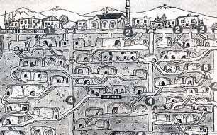 Эрамиздан аввалги 4-йилга мансуб Рим ёзма манбаасида Анабасис деб номланувчи ер ости шаҳри ҳақида қуйидаги битиклар ёзилган: "Биз тасодифан Анабасисга рўбарў келдик ва унинг катталигидан ҳайратга тушдик. қуйига олиб тушувчи тунеллар бўлиб, уларда ҳатто, фил олиб юриш мумкин эди. Кўплаб катта-кичик зинапоялар, улкан қудуқлар, рақс тушиладиган ва томошабинларга мўлжалланган махсус жойлар бўлган. Бу шаҳарлар юқоридан ҳеч ким сезмайдиган, билмайдиган тарзда бунёд этилган. Гўё одамлар ер ости шаҳарлари аҳолиси учун душман бўлган".