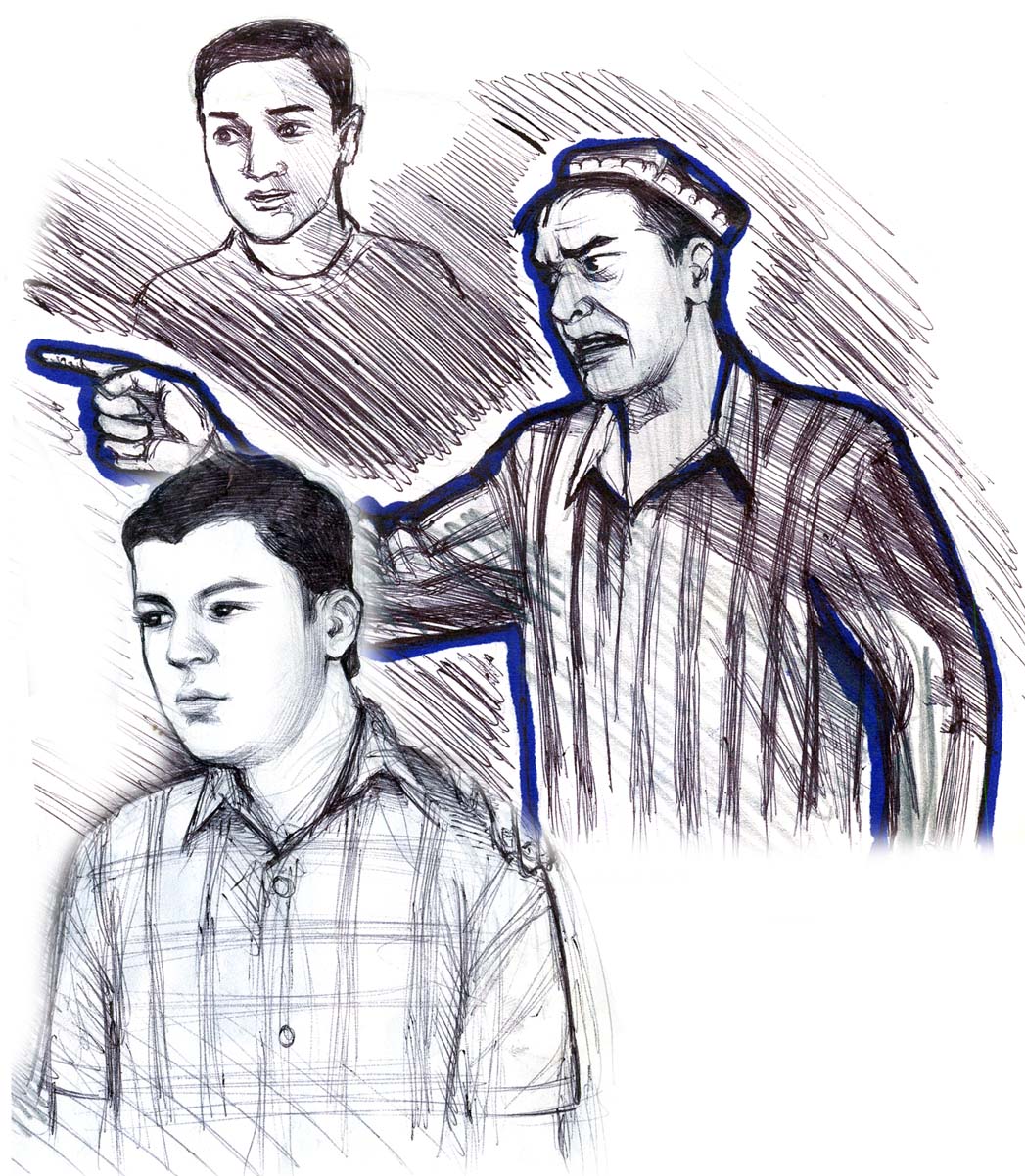 Калака қилинаётганини пайқаган отанинг бутун вужуди қақшаб оғриди, кўз ўнги хиралашди, юпқа, ёрилган лаблари терак баргидай дир-дир титрай бошлади. Агар бошқа одам бўлганида ўрнидан сапчиб туриб, қўлига илинган таёқ билан фарзандларини аямай савалар эди. Аммо, етимликнинг қора қозонида қайнаб тобланган Каримбек тишини тишига қўйди, хира кўзларидаги ип каби майда томирлар қип-қизил қонга тўлди. Худди кўсов каби қоп-қора, қотма қўллари тортишди, панжалари мушт бўлиб тугилди. Шу аснода гезарган лабларидан шу гап сизиб чиқди.
