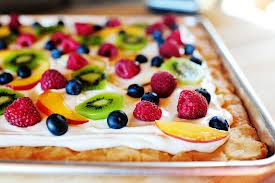 Керакли масаллиқлар: Бир донадан апельсин, киви, банан, 2 дона олма, 0,5 кг. майда қулупнай меваси, 0,5 л. илиқ сут, бир чой қошиқ дрожа, бир ош қошиқ шакар, 100 гр. сариёғ, юмшоқ хамир учун ун, 0,5 л. қуюқ қаймоқ, бир пиёла суюқ асал, 100 гр. ёнғоқ мағзи.