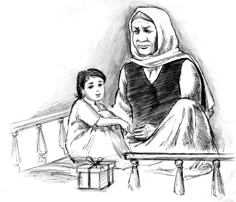 Тўрида фариштадай бўлиб ўтирган бувига ҳар ким ўз совғасини топшира бошлади. Тўнғич ўғил бувининг сурати туширилган чинни вазани тўёна қилди. Қизлари эса қўша-қўша сарполар тақдим этишди. Бувини қутламаган фақатгина кенжа набираси қолди. Қизиқ у нима совға қилар экан? Ана у кўзлари ёниб, чақнаб бувиси ёнига келди.