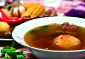 Тайёрланиши: Маккажўхори сўтасини пўстлоғидан ажратинг. Ҳар бир думбулни 2-3 тага бўлиб ювинг ва совуқ сувга солиб қайнатиб олинг. Сувини тўкиб ташланг. Шунда макканинг ўзига хос ҳиди кетади. Қозонга сув қуйиб, думбулни ёғлироқ гўшт билан бирга паст оловда бир соат давомида қайнатинг. Унга янги 100 гр. қўй ёғини майда тўғранг ва жамбил билан бирга солинг. Ҳосил бўлган кўпигини олиб, доира шаклида кесилган пиёз ва помидорни қўшинг. Пишишига 20 дақиқа қолганда картошка солинг. Тузини таом пишганда ростланг. Дастурхонга тортишдан аввал шўрва юзига тўғралган кашнич ёки райҳон баргларидан солинг.