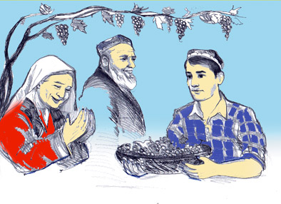 - Буви, узумларни бозорга олиб чиқсам, уч-тўрт сўм бўлиб қоларди, нима дейсиз? - Олтиндек товланишни бошлаган узумларга ишора қилиб, бувига маслаҳат солди Соҳибжон. Анор буви рози бўлди. Фақат олдидан узиб берилган бир патнис узум бошларини ўз қўллари билан қўни-қўшнига улашди, сўнг қолганларини бозорга олиб чиқишга кўнди.