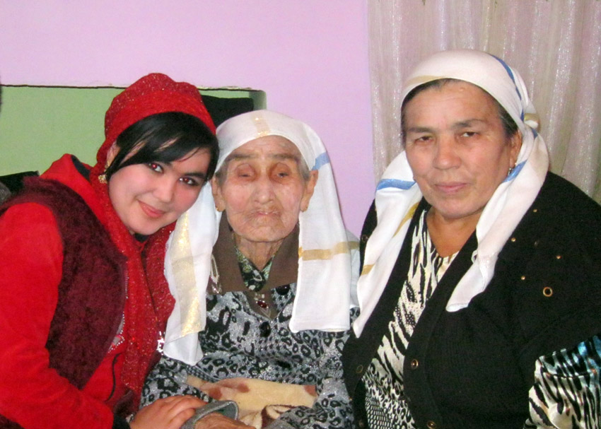 Суратда: Мирвонжон момо қизи ва набира келини билан.