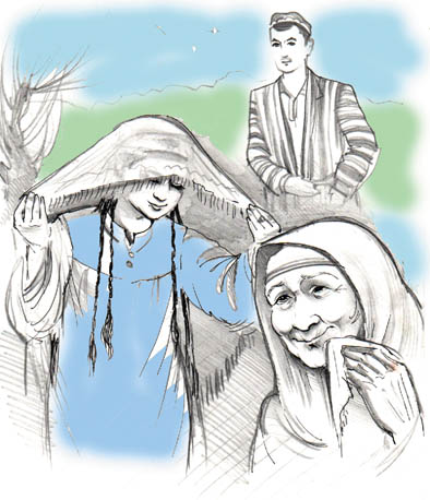 Келинчак... Бирам нафосатли, бирам назокатли... Ибою ҳаёси нигоҳларидаёқ акс этади. Куёвнинг кўкси ғурурга тўлди: "Ошиқлар ичида марди ўзим бўлдим, шу ҳилолнинг осмониман энди..." Қайнона-қайнотанинг боши самода: "Шукр, шундай гулнинг боғбонимиз энди..."