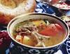 Керакли масаллиқлар: 300 гр. мол гўшти, 250 гр. пўстдумба, 250 гр. нўхат, 2 дона пиёз, мурч, туз.